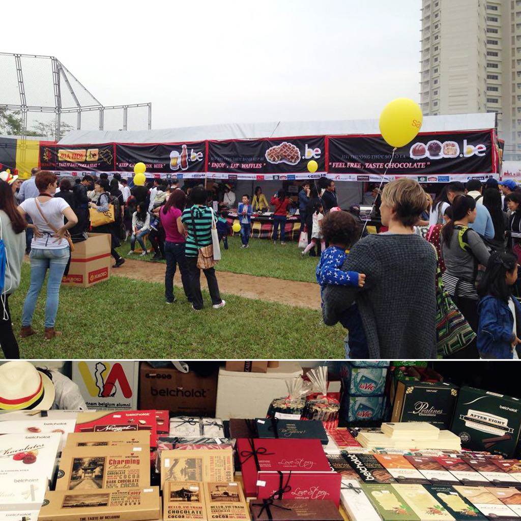 Belgian Table - Gian hàng Vương quốc Bỉ là một trong những gian hàng thu hút đặc biệt của Hội chợ với những món "đặc sản" của mình. Nước Bỉ không chỉ nổi tiếng với quảng trường Grand Place đẹp nhất Châu Âu, hay biểu tượng chú bé Manneken Pis ngộ nghĩnh đáng yêu, với bia và khoai tây chiên, với bánh pan-cake (waffle), nơi đây còn được mệnh danh là “thủ đô chocolate của thế giới” với những loại chocolate hảo hạng và được xếp là loại chocolate ngon nhất thế giới.