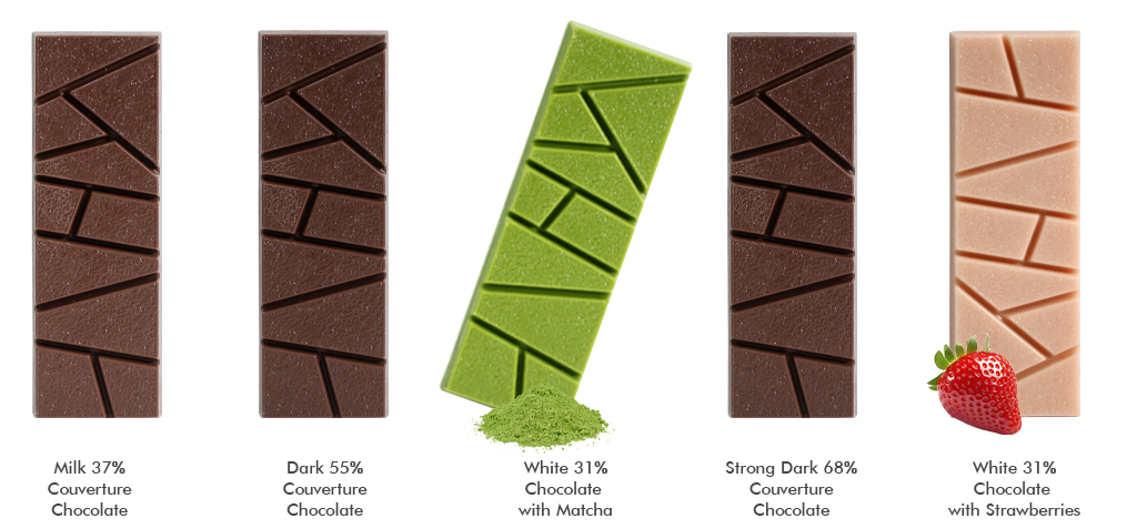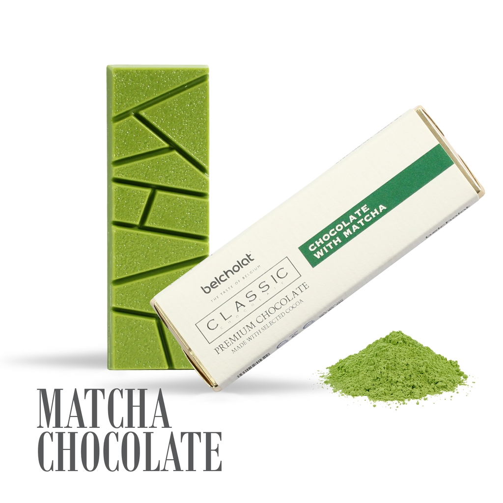 - Chocolate with Matcha: Đường, Bơ cacao, Sữa bột, Matcha, Lecithin (322(i)), Vanillin. Hàm lượng ca cao min. 31%