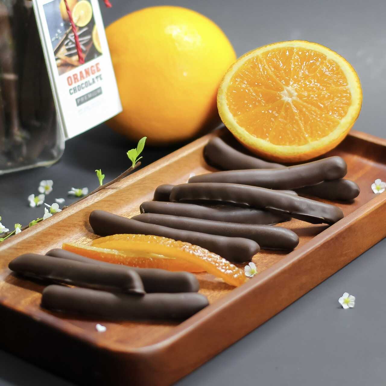 Được làm từ nguyên liệu Couverture Chocolate thượng hạng cùng nguồn cam tươi chọn lọc, với những trái cam tươi chín mọng được tuyển chọn kỹ càng, Orange Chocolate không chỉ là món ăn ngon, món quà tuyệt vời dành tặng những người thân yêu mà còn giúp bạn tìm về những trong trẻo của tâm hồn…
