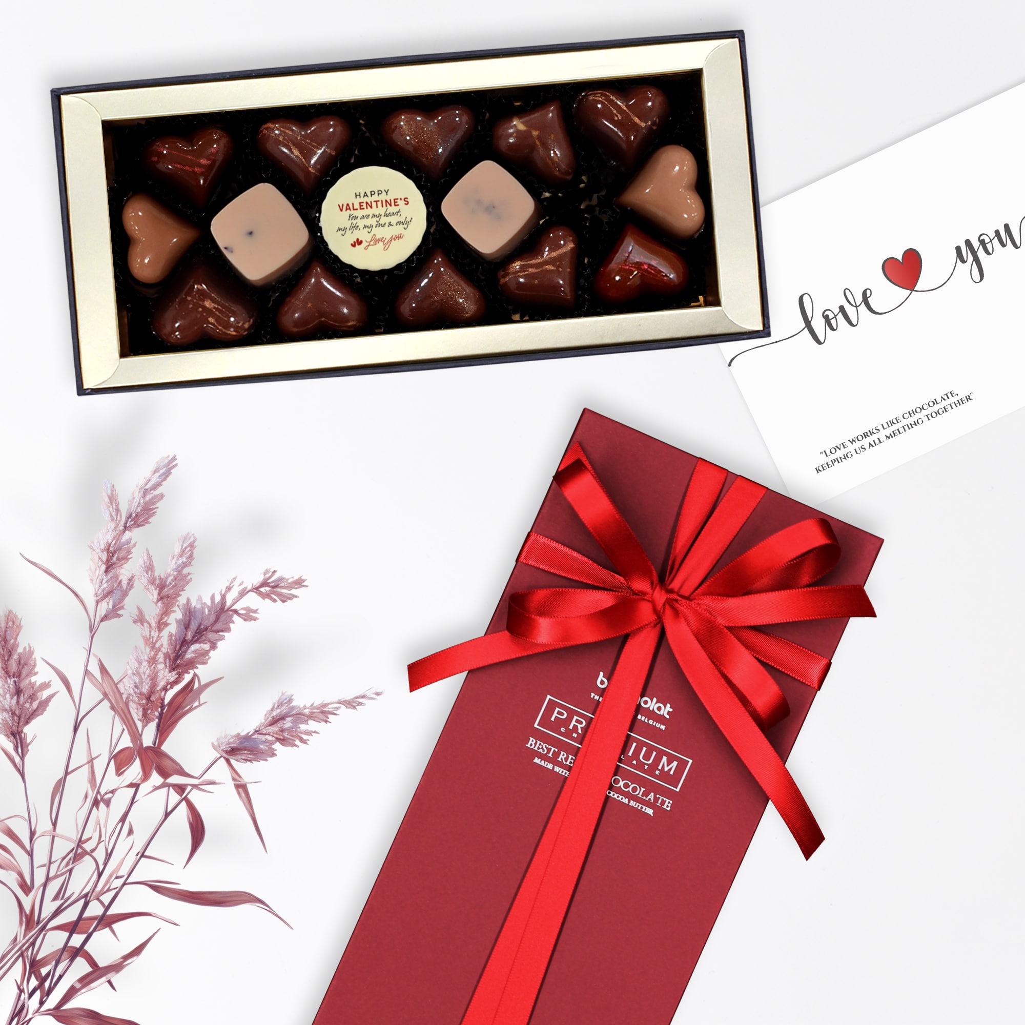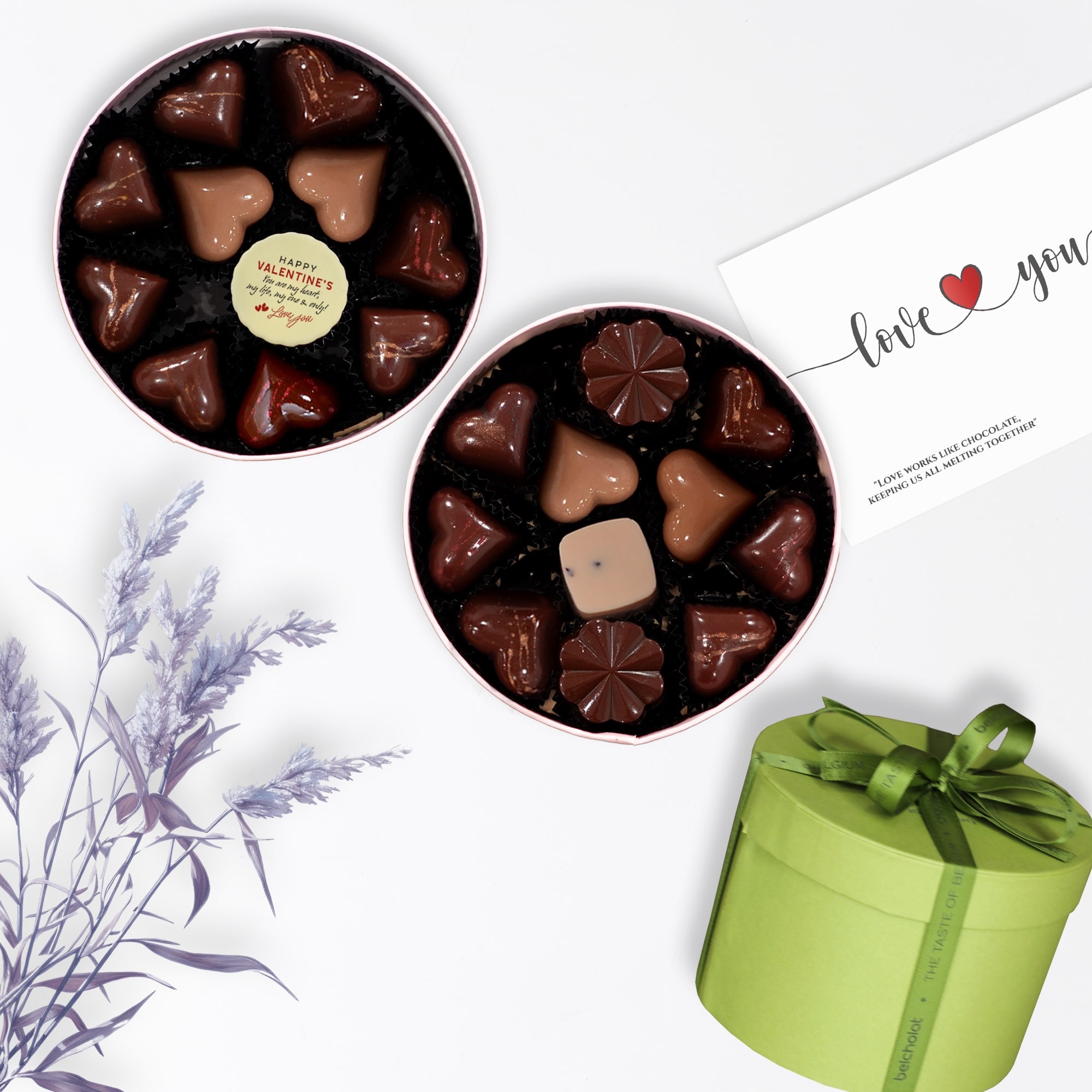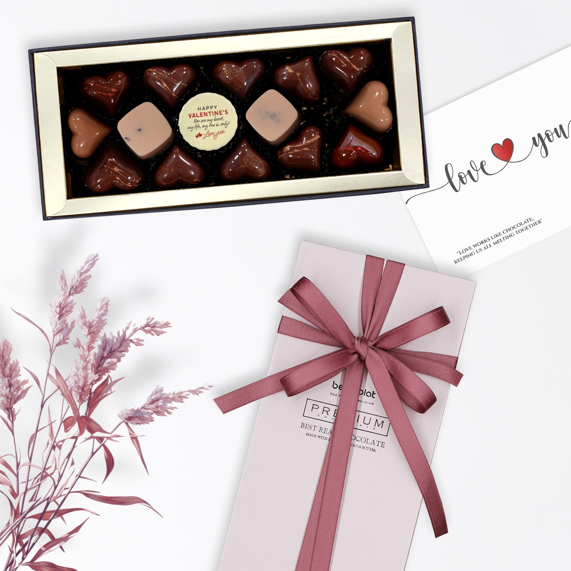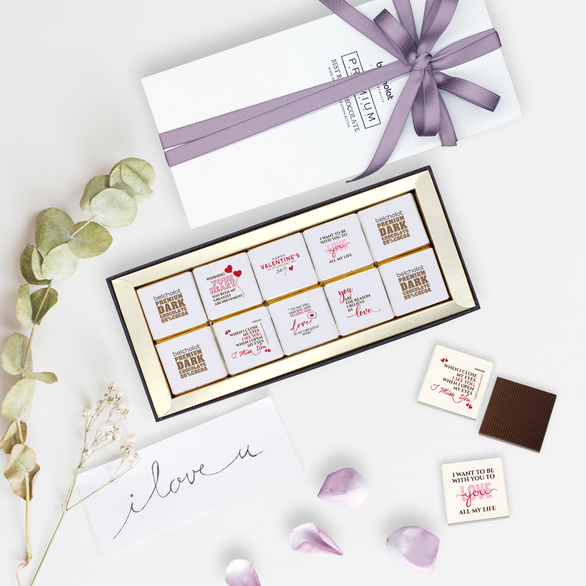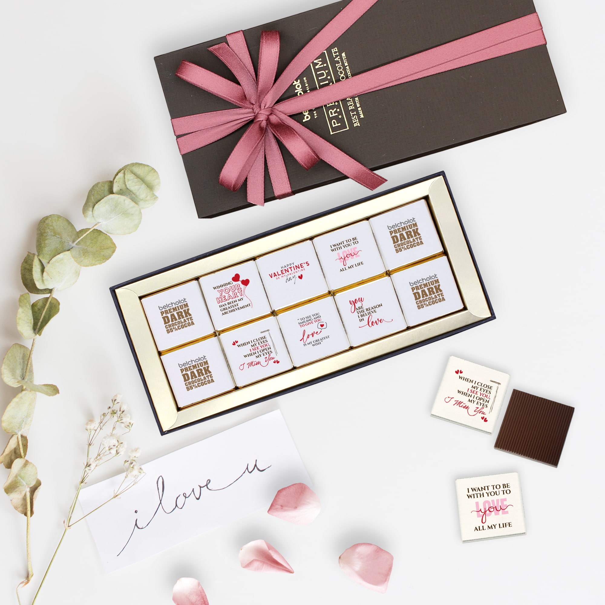Món quà đặc biệt không chỉ ở chất lượng cao cấp và thiết kế sang trọng, bộ sản phẩm mang tính cá biệt hoá giúp bạn gửi đi thông điệp yêu thương của bạn, và chỉ của riêng bạn đến một nửa của mình theo cách bất ngờ và đong đầy tình yêu. Nếu bạn ngại mở lời, hãy để Belcholat giúp bạn!