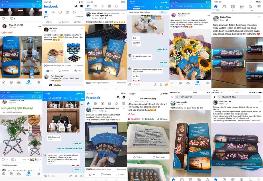 Biết ơn những con người đang ngày đêm đương đầu với cuộc chiến đầy hiểm nguy để bảo vệ sự an toàn cho đồng bào – đó là các y sĩ, bác sĩ, quân nhân, lực lượng vũ trang, lực lượng tình nguyện… nơi tuyến đầu chống dịch – Trong suốt tháng 3, tháng 4/2020, toàn thể nhân viên Công ty Socola Belcholat đã không quản ngại trong lúc dịch bệnh đang bùng phát cao điểm để sản xuất và vận chuyển 20.000 thanh socola (tương đương hơn 1 tấn socola) mang tên “Socola Cảm Ơn”, gửi đến các bệnh viện tuyến đầu, các điểm cách ly, các đồn biên phòng, … Mỗi thanh Socola là một lời CẢM ƠN từ tận đáy lòng của những thành viên Công ty Sô cô la Belcholat gửi đến các chiến sỹ đang tham gia cuộc chiến đầy cam go này.