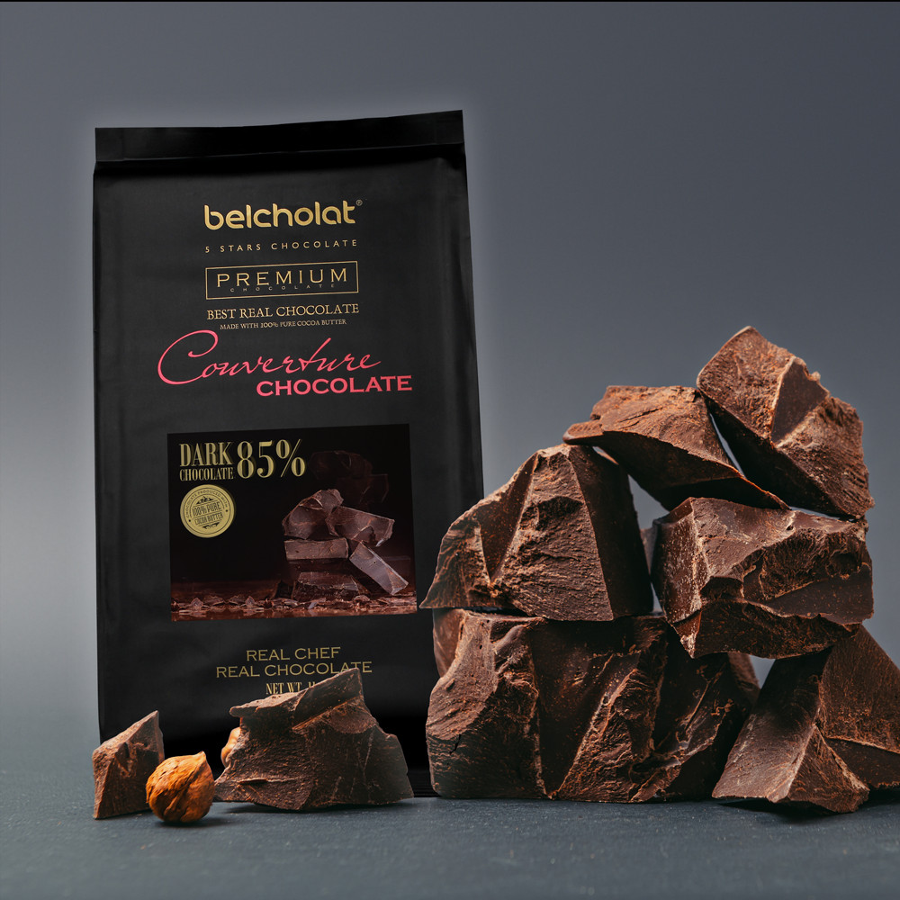 Ví Dụ như các loại socola đen đắng ở Belcholat có % cao như : 88%, 85%, 80%, 78%, 77%, 70%.