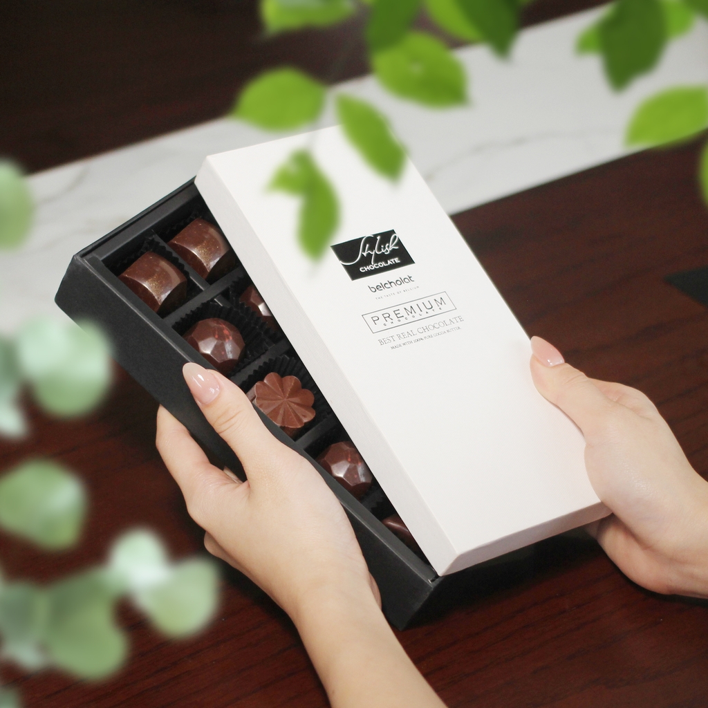 Stylish Chocolate - đúng như tên gọi của nó, là sản phẩm mới nằm trong bộ sản phẩm cao cấp (Premium Collection) được Belcholat đưa ra thị trường mang đậm phong cách riêng không thể hoà lẫn. Những người thợ đã phát huy hết tài năng của mình trong việc sáng tạo hình dáng cho từng viên socola, từ viên kim cương đến hình cầu khuyết góc, hay lạ mắt với viên socola hình tháp,...mỗi viên đều được đặt cẩn thận trong cốc giấy và ngăn đựng riêng biệt, đảm bảo chặt chẽ an toàn vệ sinh thực phẩm. Với nguyên liệu 100% bơ cacao nhập khẩu từ Bỉ kết hợp hương vị từ những hạt hạnh nhân được lựa chọn và chế biến kĩ càng, Stylish Chocolate thật sự là một lựa chọn giúp bạn thể hiện phong cách của chính mình.