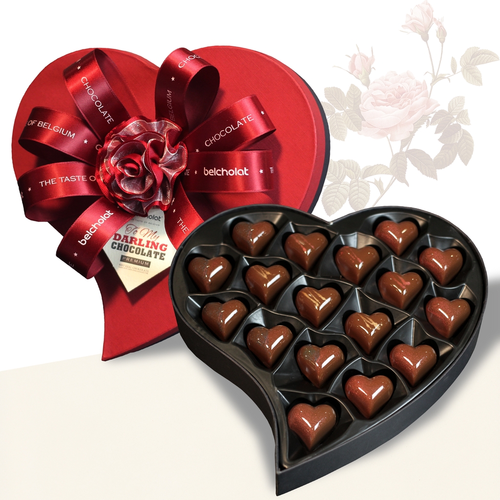 Được làm từ nguyên liệu couverture chocolate 5 sao hảo hạng, 100% bơ cacao nguyên chất, Dark Couverture Chocolate 55%, đắng nhẹ và ít ngọt, không nhân. Socola được cho là biểu tượng tình cảm, thu hút, tình yêu sâu sắc, sang trọng, niềm đam mê và cảm giác. Socola làm tăng mức độ mong muốn và năng lượng. Endorphins được giải phóng và chất Endorphins sẽ làm ta hạnh phúc. Hãy cùng đắm chìm trong cảm xúc ngọt ngào với những món quà tặng Socola Tình yêu đầy lãng mạn của Belcholat.