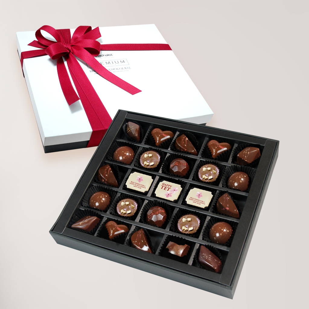 Tại Belcholat Chocolate, chúng tôi tạo ra những món quà chocolate thiết kế riêng biệt, độc đáo cho bất kỳ sự kiện nào của doanh nghiệp bạn. Những viên chocolate hảo hạng được chúng tôi chế tác một cách tỉ mỉ và nâng niu trong những hộp quà trang nhã và tinh tế. Mỗi hộp Chocolate sẽ mang thương hiệu hay thông điệp của chính bạn muốn gửi trao.