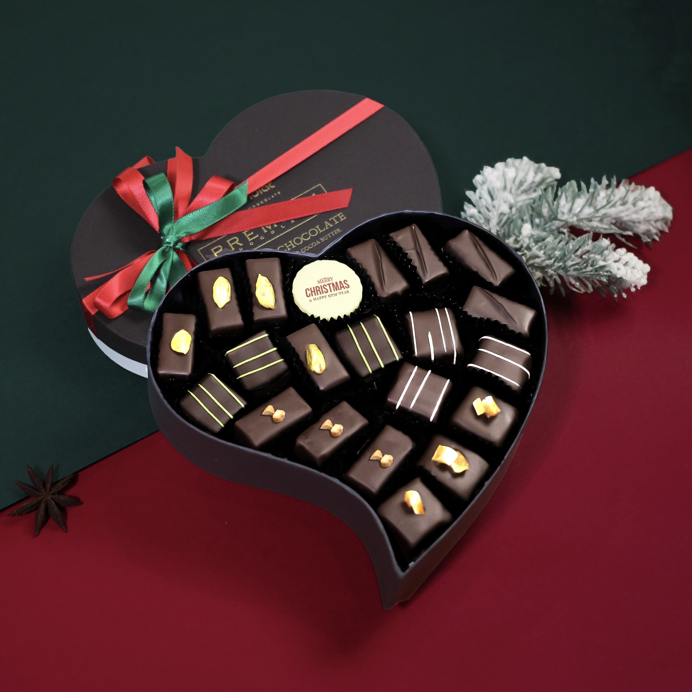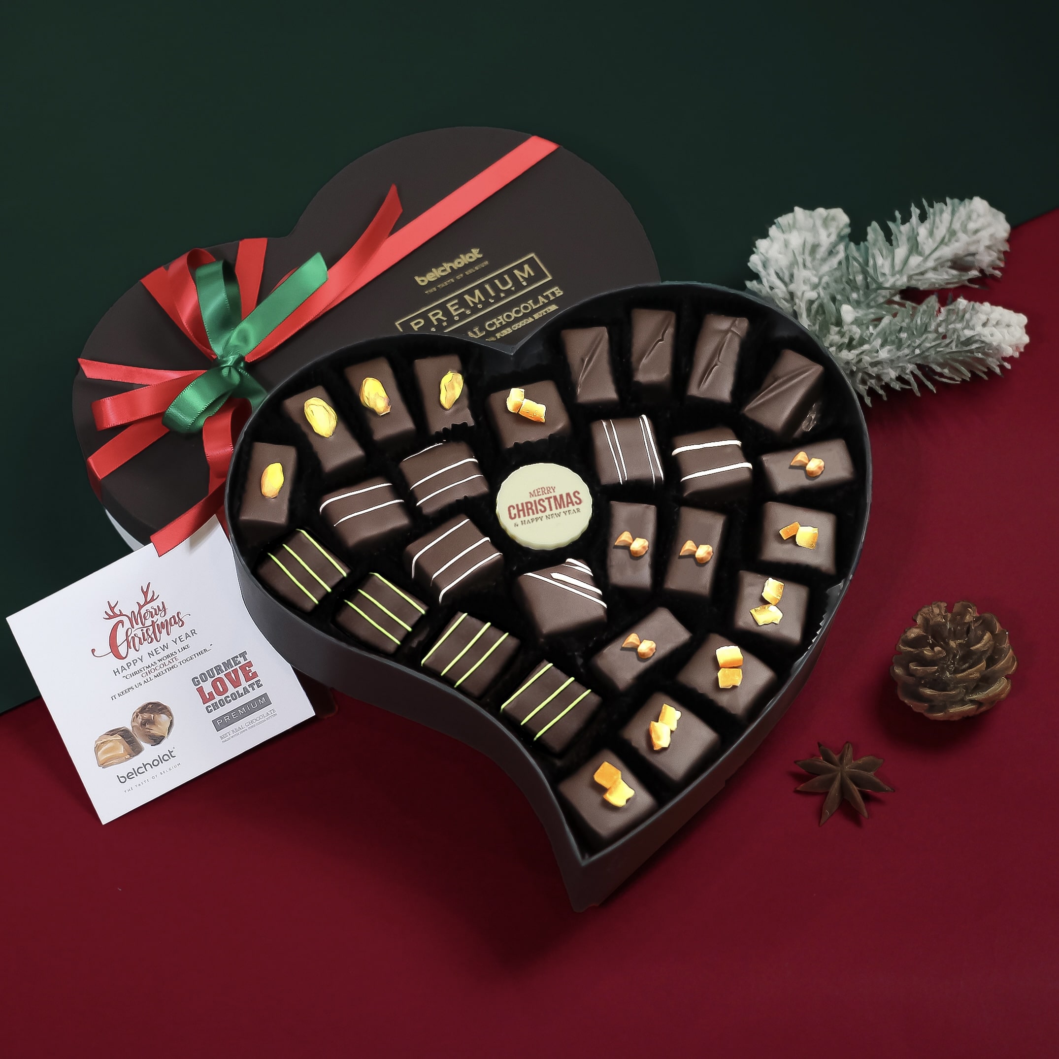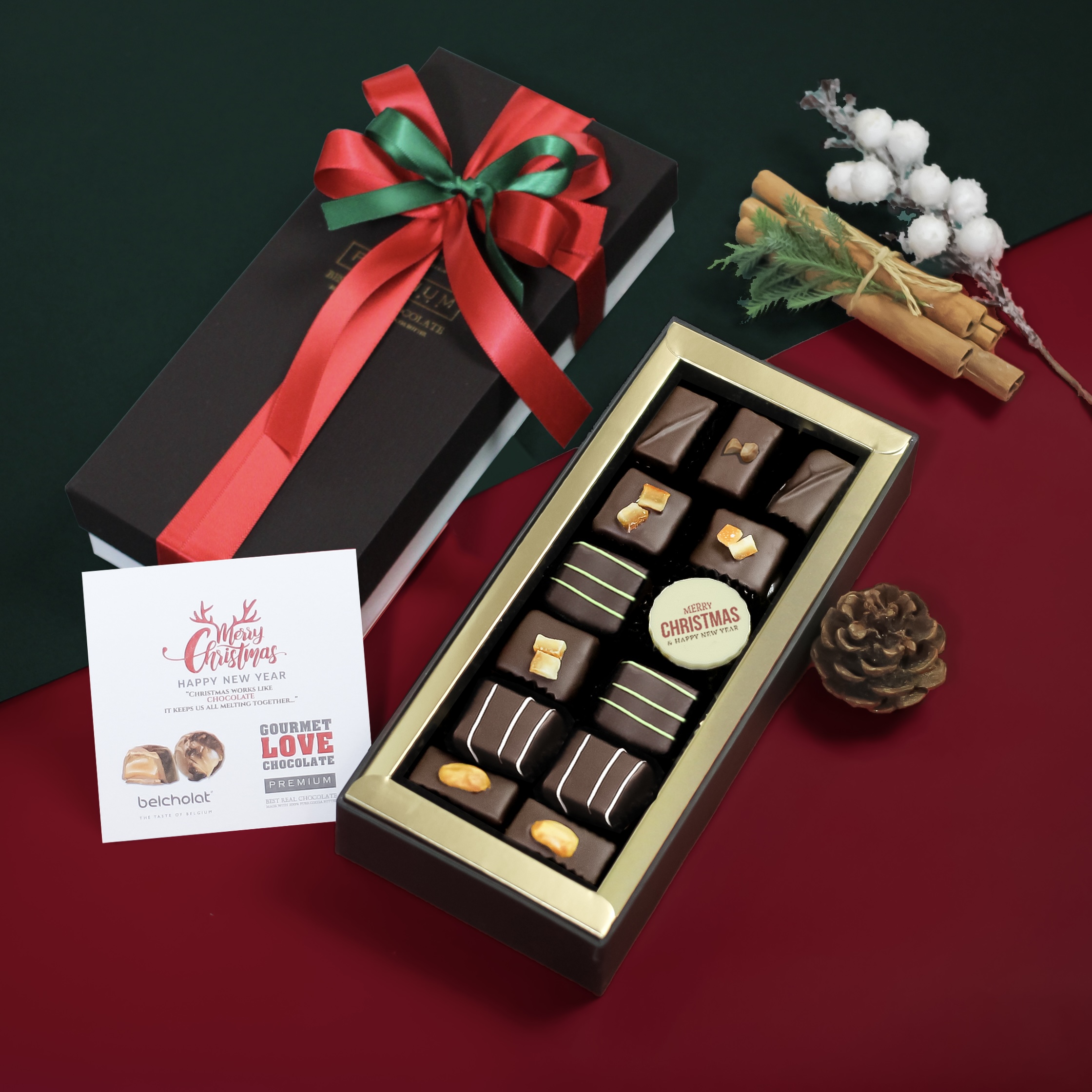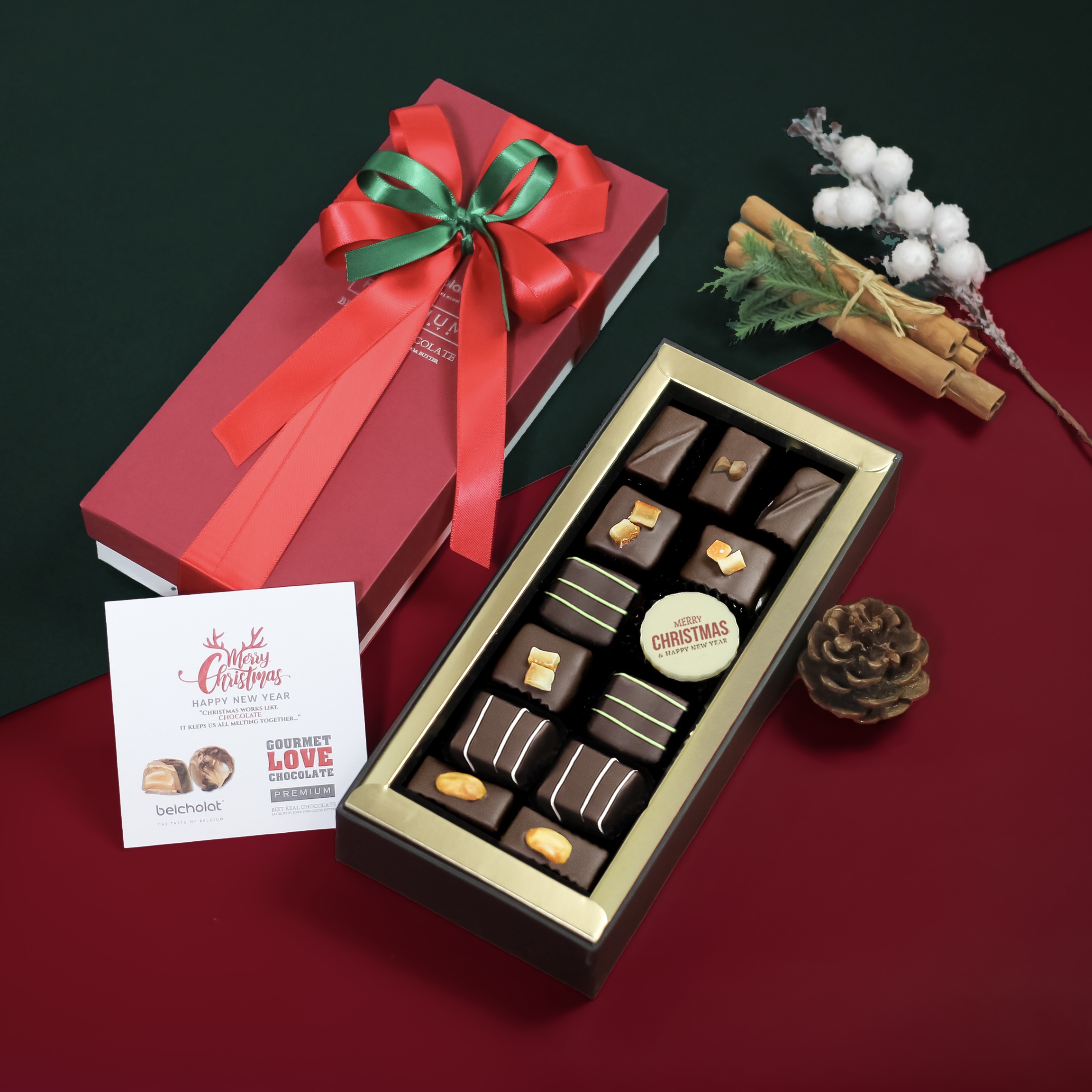Gourmet Love Chocolate dịp Giáng Sinh này đánh dấu sự thay đổi hoàn toàn đột phá cho trải nghiệm socola của bạn thú vị hơn bao giờ hết. Những viên socola được người thợ tỉ mỉ chế biến với bao tâm huyết và khéo léo, cho phần nhân thơm nức của Hazelnut (hạt phỉ), Cashew nut (hạt điều), Peanut & Pistachio (đậu phộng và hạt dẻ), Almond (hạnh nhân), cam tươi, matcha, dâu tây được gói trọn hoàn hảo trong lớp socola óng ánh.