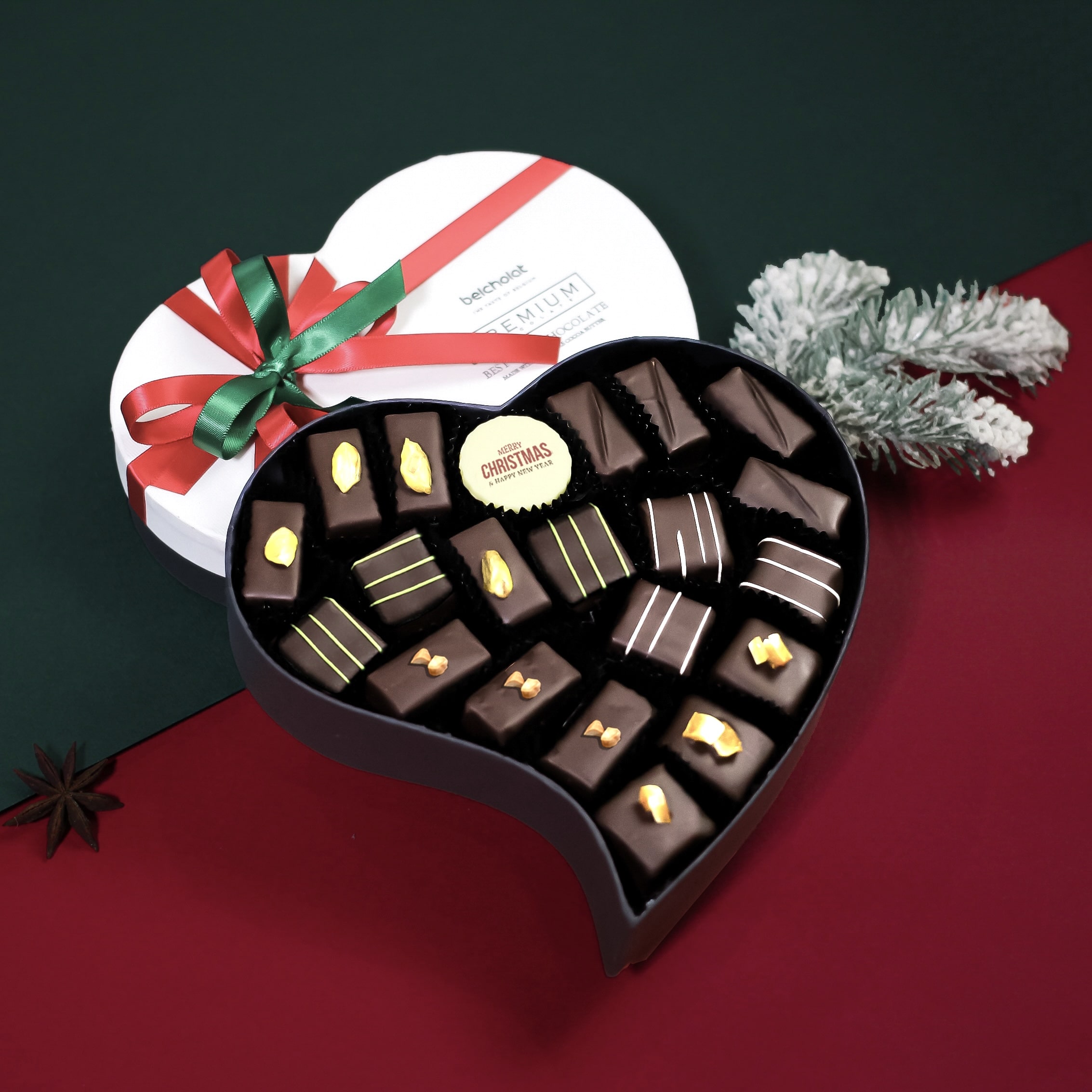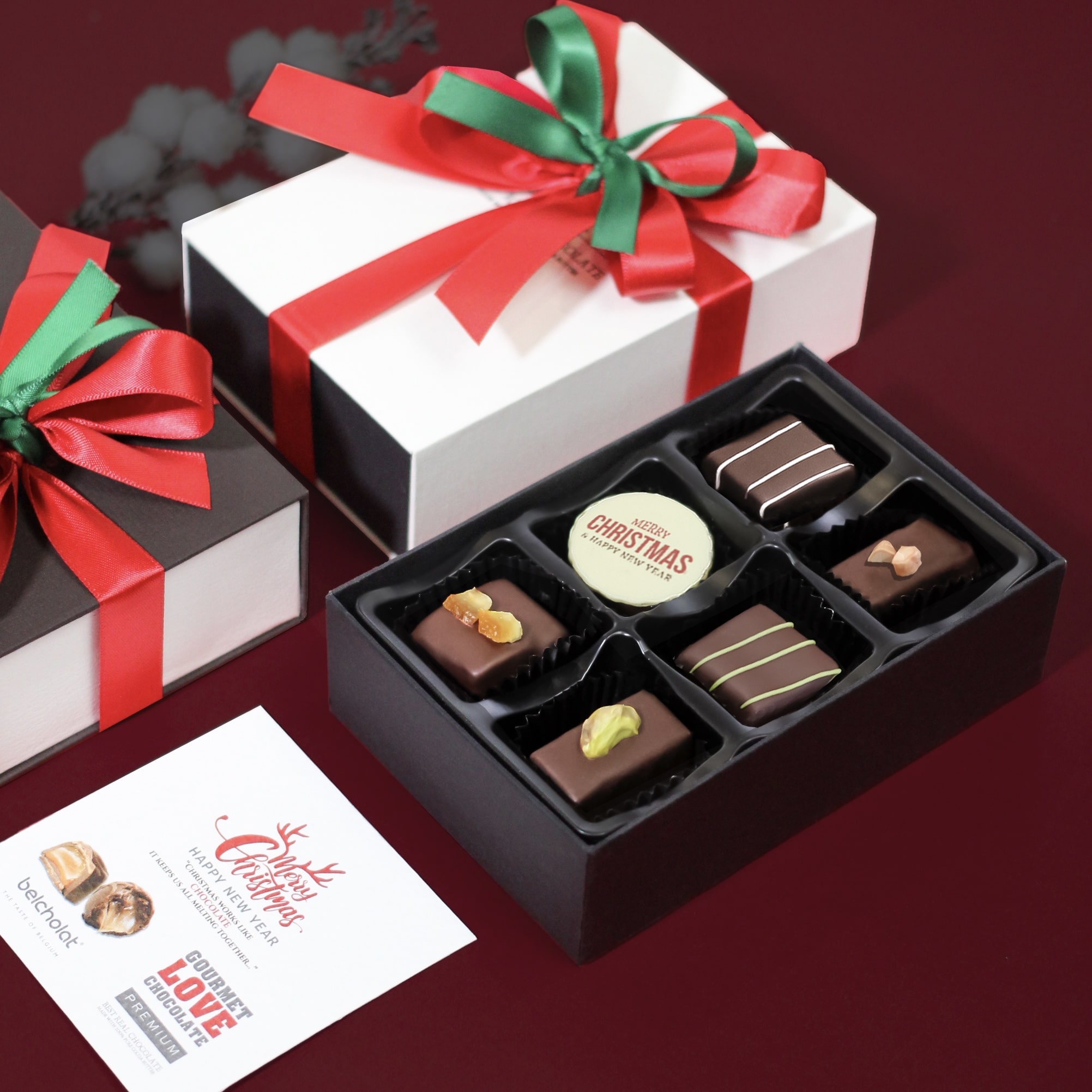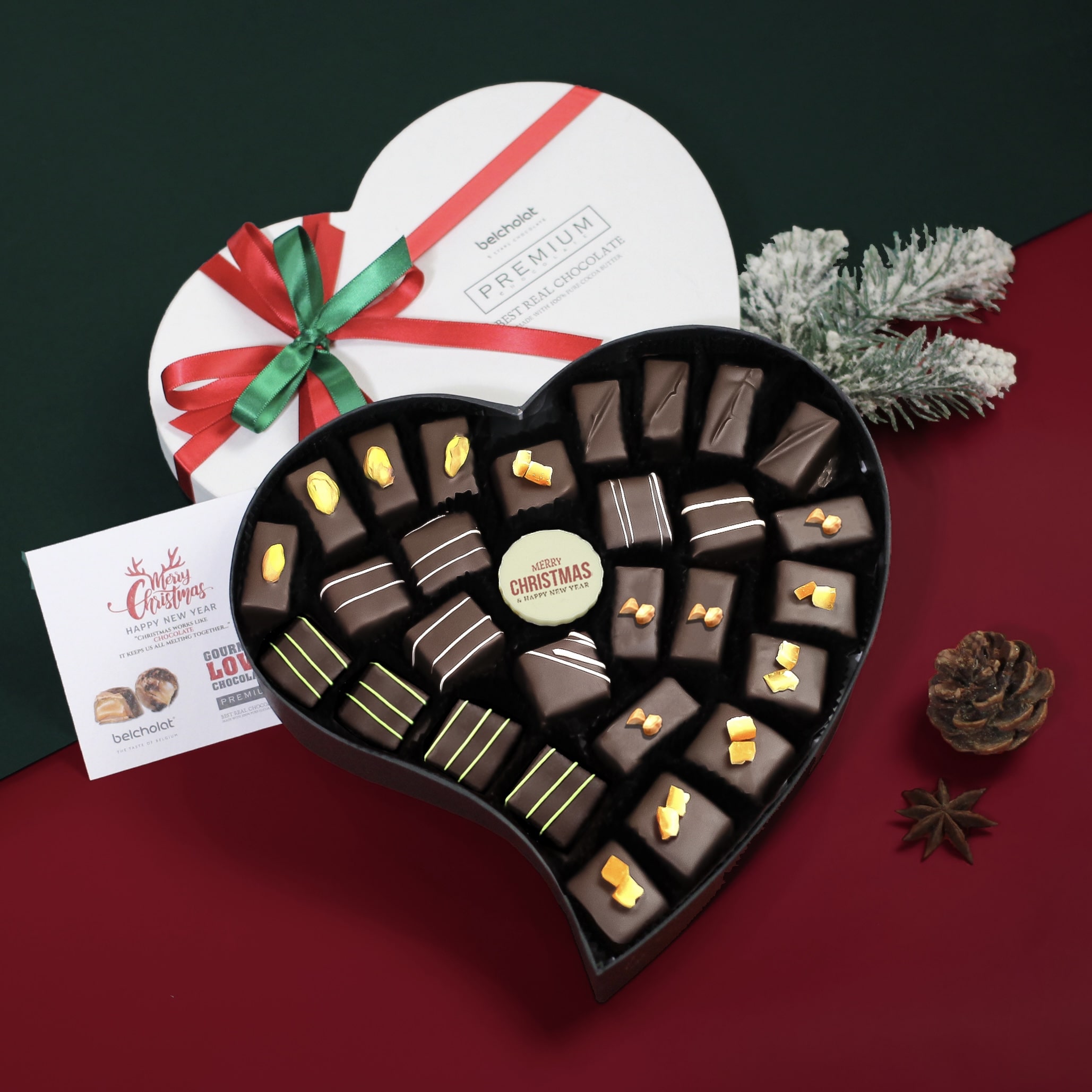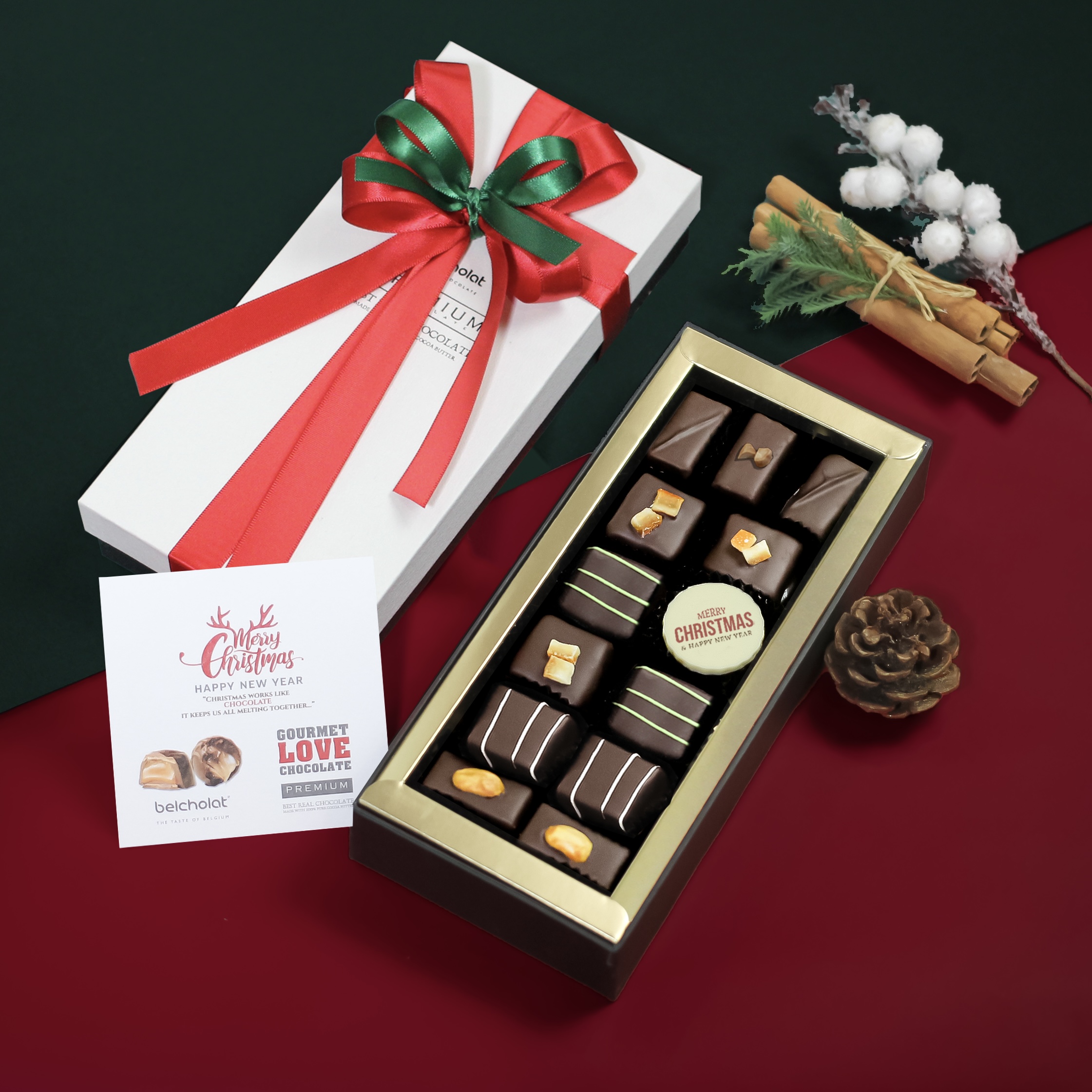 Gourmet Love Chocolate dịp Giáng Sinh này đánh dấu sự thay đổi hoàn toàn đột phá cho trải nghiệm socola của bạn thú vị hơn bao giờ hết. Những viên socola được người thợ tỉ mỉ chế biến với bao tâm huyết và khéo léo, cho phần nhân thơm nức của Hazelnut (hạt phỉ), Cashew nut (hạt điều), Peanut & Pistachio (đậu phộng và hạt dẻ), Almond (hạnh nhân), cam tươi, matcha, dâu tây được gói trọn hoàn hảo trong lớp socola óng ánh.